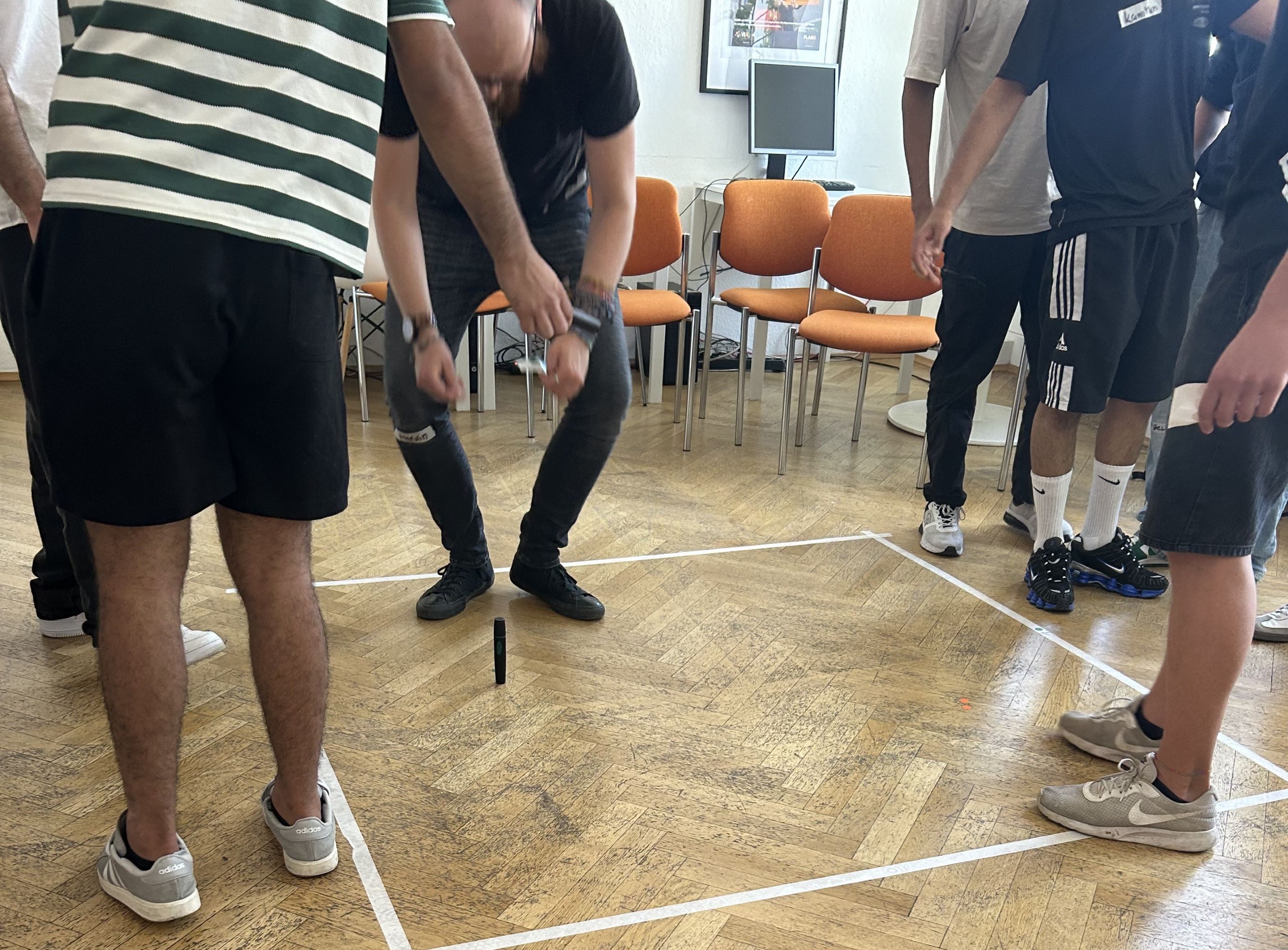 Ein weiterer Schwerpunkt war ein Deeskalationsspiel zum Thema Beleidigungen. Die Jugendlichen setzten sich dabei mit Fragen auseinander wie: Welche Wirkung haben Beleidigungen? Was lösen sie in mir aus? Wie kann ich in einer aufgeheizten Situation deeskalierend reagieren? Und wie möchte ich selbst behandelt werden, wenn jemand wütend auf mich ist? Diese Reflexion eröffnete spannende Einblicke und half den Teilnehmenden, neue Strategien für einen respektvollen Umgang miteinander zu entwickeln. Durch die Mischung aus spielerischem Erleben und intensiver Auseinandersetzung mit dem eigenen Verhalten konnten die Jugendlichen wichtige Erfahrungen für Teamarbeit, Konfliktbewältigung und ein achtsames Miteinander sammeln.