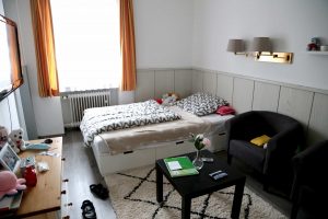 Am neuen Standort wurde ein ehemaliges Hotel für Phoenix so umgebaut, dass jede:r Jugendliche über eine eigene Küche sowie Nasszelle verfügt und sich so in der Selbstständigkeit erproben kann. Die modern eingerichteten Appartements bieten eine optimale Grundlage für die ersten Versuche, sich selbst zu versorgen und ausreichend Platz für individuelle Raumgestaltung. Dabei genießen alle Bewohner:innen weiterhin die Sicherheit einer 24-Stunden-Betreuung, die ihnen Halt gibt. Der große Aufenthaltsraum dient als Treffpunkt, um gemeinsame Aktivitäten zu planen oder einen anstrengenden Schultag ausklingen zu lassen. In der zweiten Etage befindet sich ein voll ausgestattetes Jugendbüro, wo unsere Bewohner:innen Zugriff auf zeitgemäße Hard- und Software haben, um den Anschluss im Bereich der Digitalisierung nicht zu verlieren.
