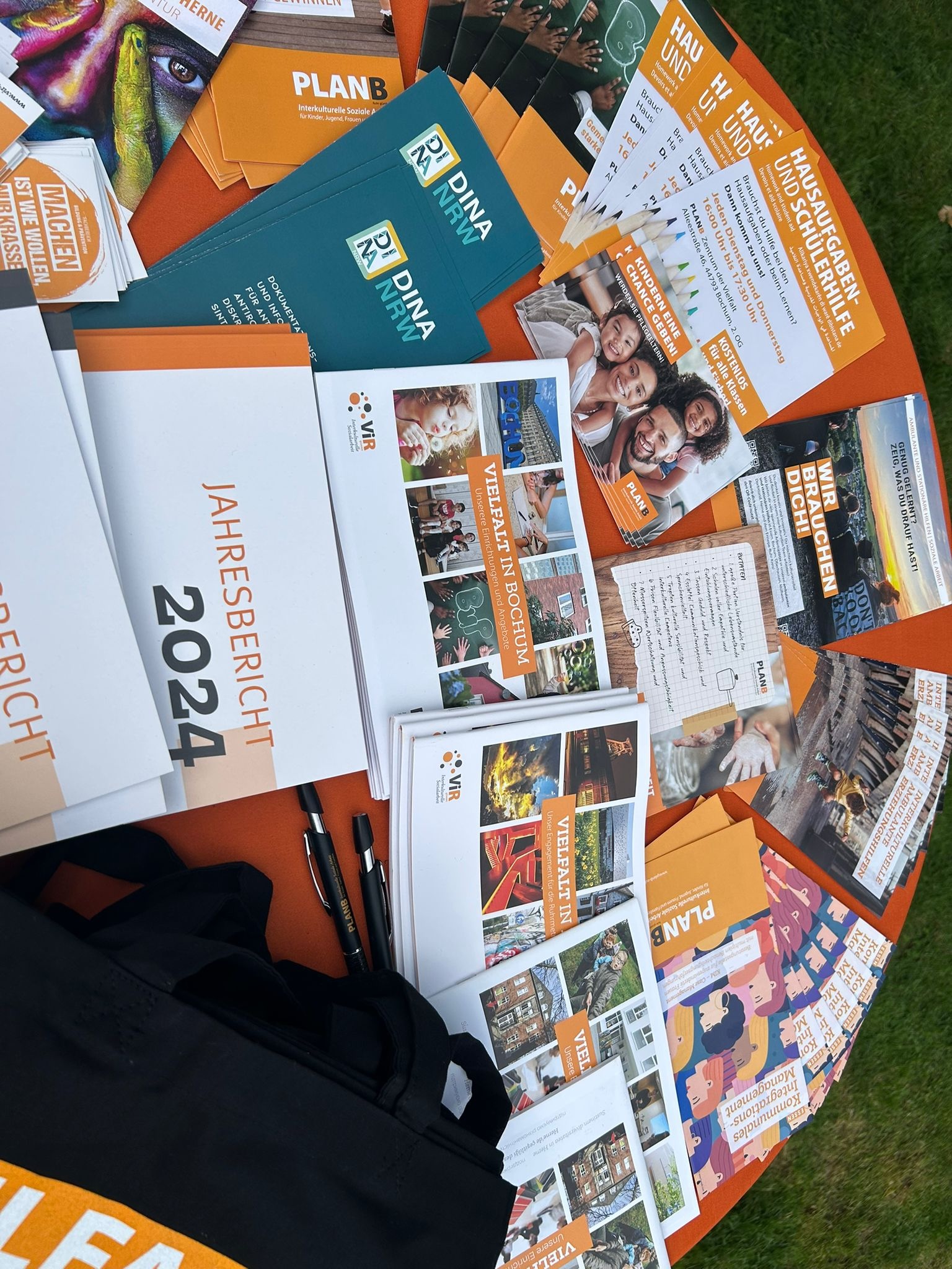 So strahlend wie die Sonne waren auch die Gesichter an unserem Stand. Die kleinen Besucher:innen freuten sich über selbstgestaltete Perlenketten und Buttons und ganz besonders über unsere bunte Zuckerwatte. Die Eltern nutzten die Zeit, um sich an unserem Stand über die Arbeit von PLANB und ViR zu informieren. Wir hatten viele gute, informative Gespräche und Begegnungen.